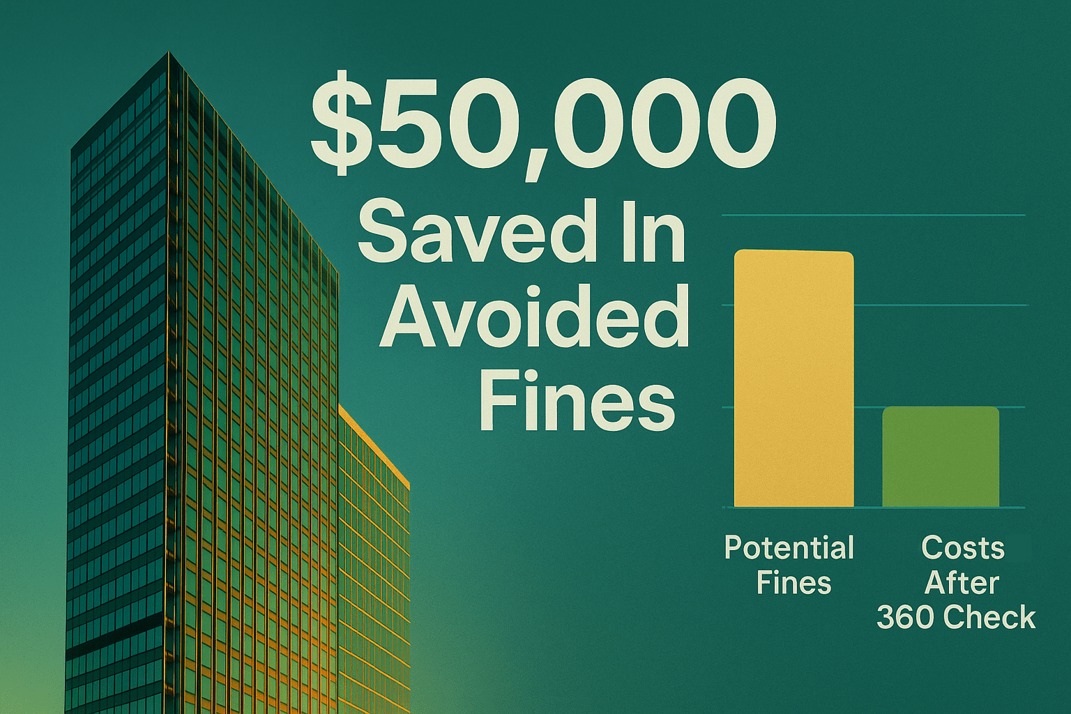 One commercial property group, with buildings spread across Chicago, Los Angeles, and Washington, D.C., booked a 360 Compliance Check after receiving a notice of violation in one city. What they discovered was eye-opening.