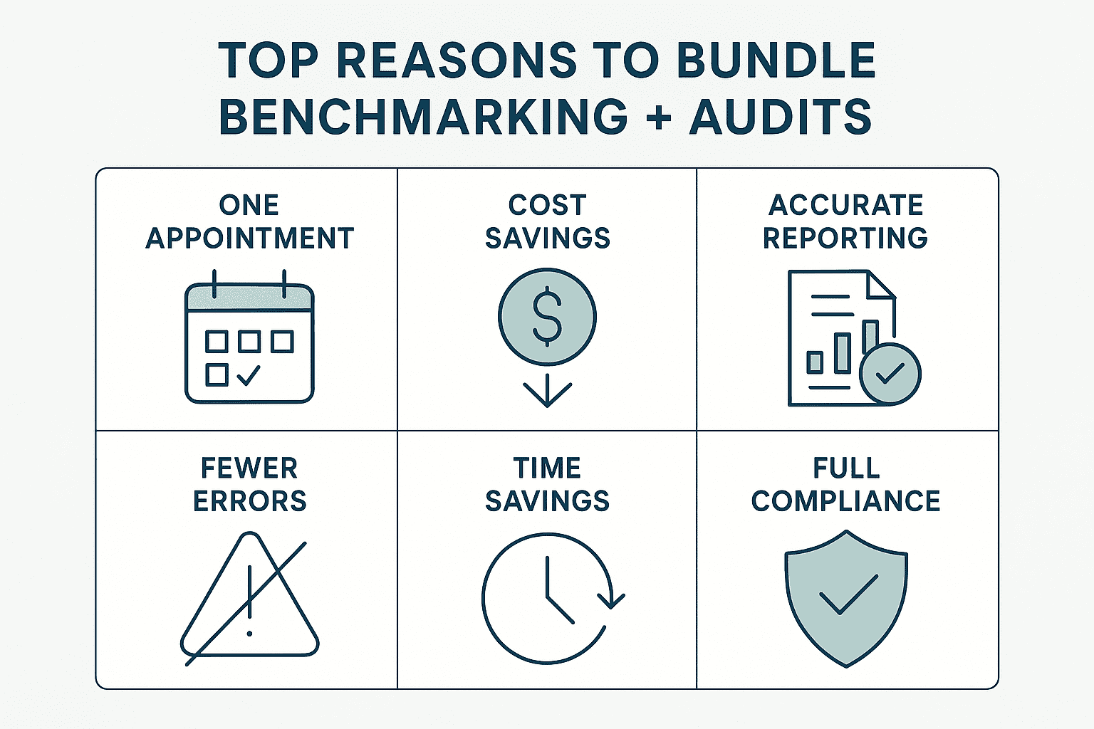 If your property is subject to benchmarking and audit requirements, bundling them into one appointment is the smartest move you can make this year.