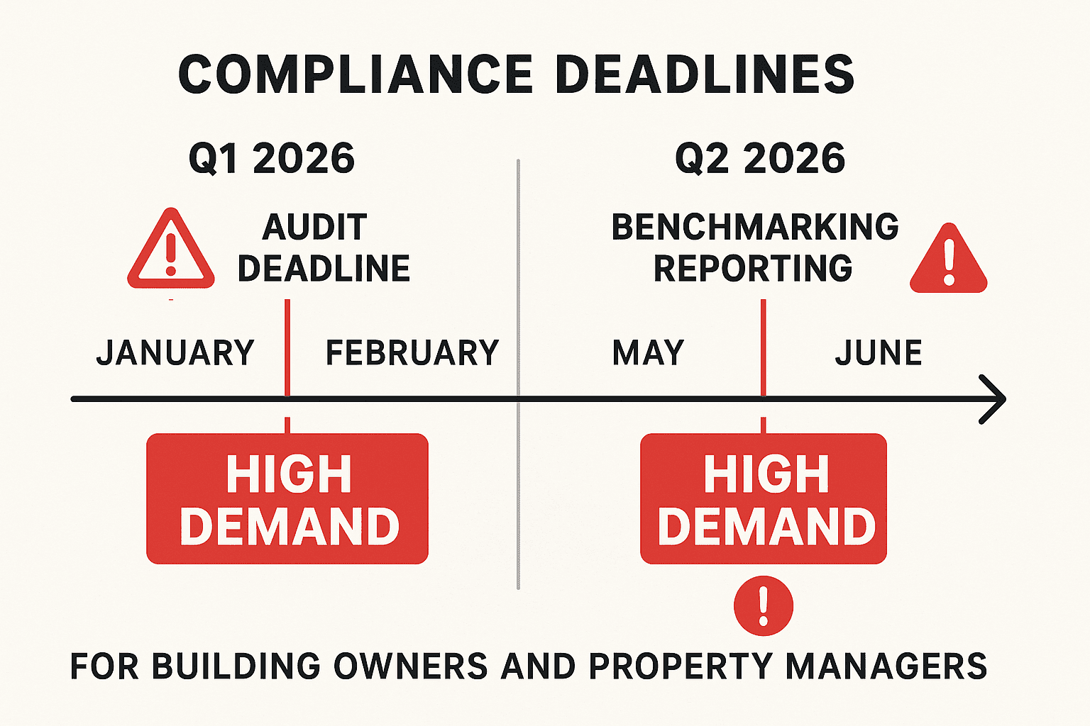 📌 Scheduling Note: Q1 2026 is expected to see record-high demand for audits and benchmark filings due to ordinance clustering. Lock in early to secure preferred delivery windows.