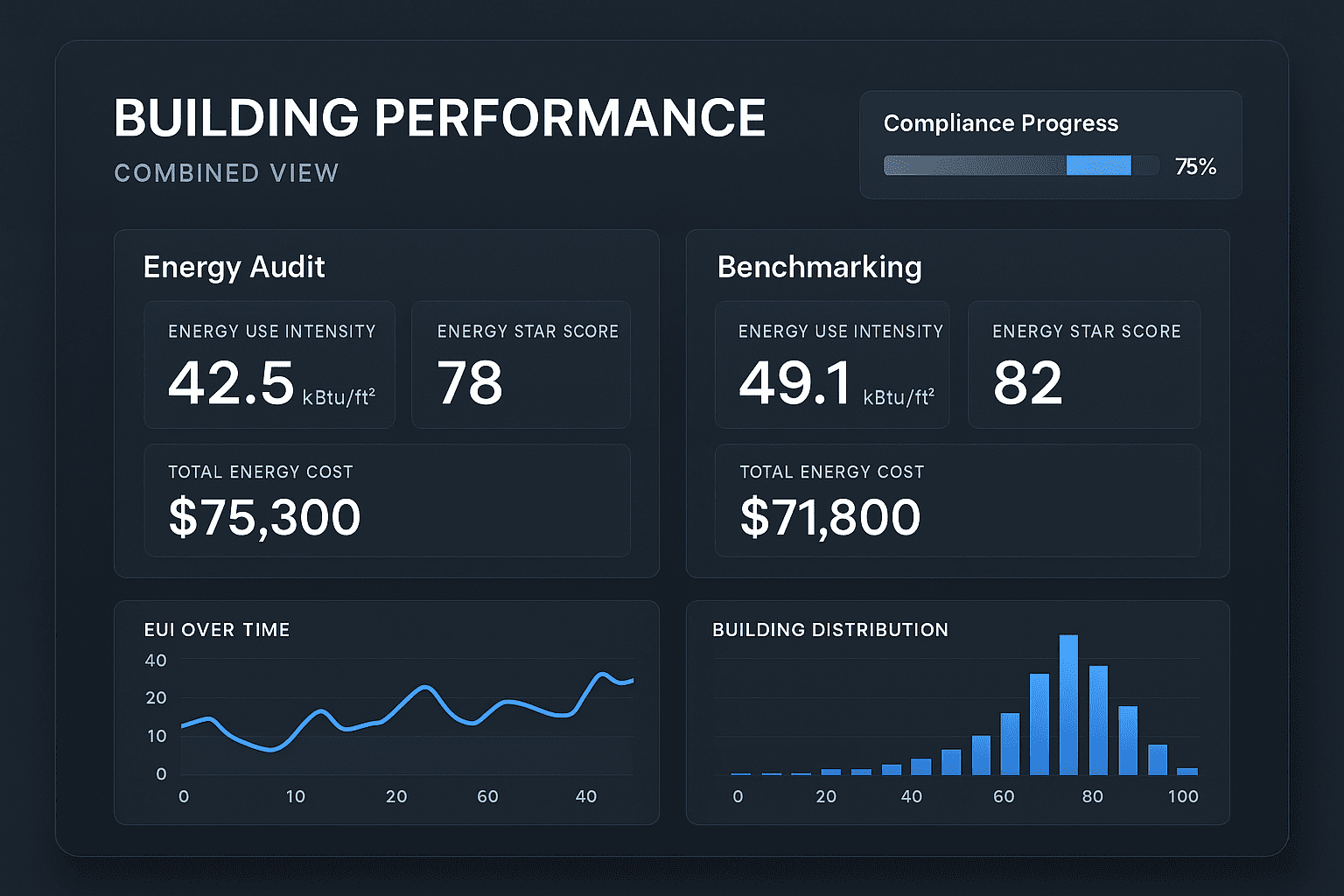 Bundling your energy audit and benchmarking services into one coordinated strategy isn’t just convenient, it’s a compliance accelerator. By combining both into a single process, you unlock more accurate insights, reduce redundant work, and maximize cost savings. In this article, we’ll break down the benefits of a combined audit and benchmarking approach, and why 2026 is the year to make the switch.