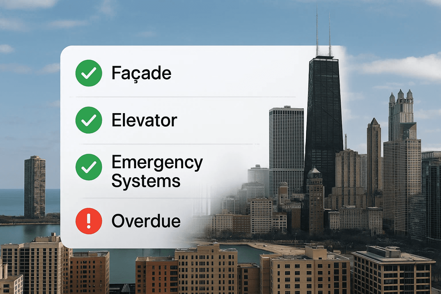 Chicago’s building inspectors now use digital systems that let them instantly cross-check your records with city filings. If you’re missing elevator certifications, outdated façade reports, or incomplete logs, they’ll catch it..
