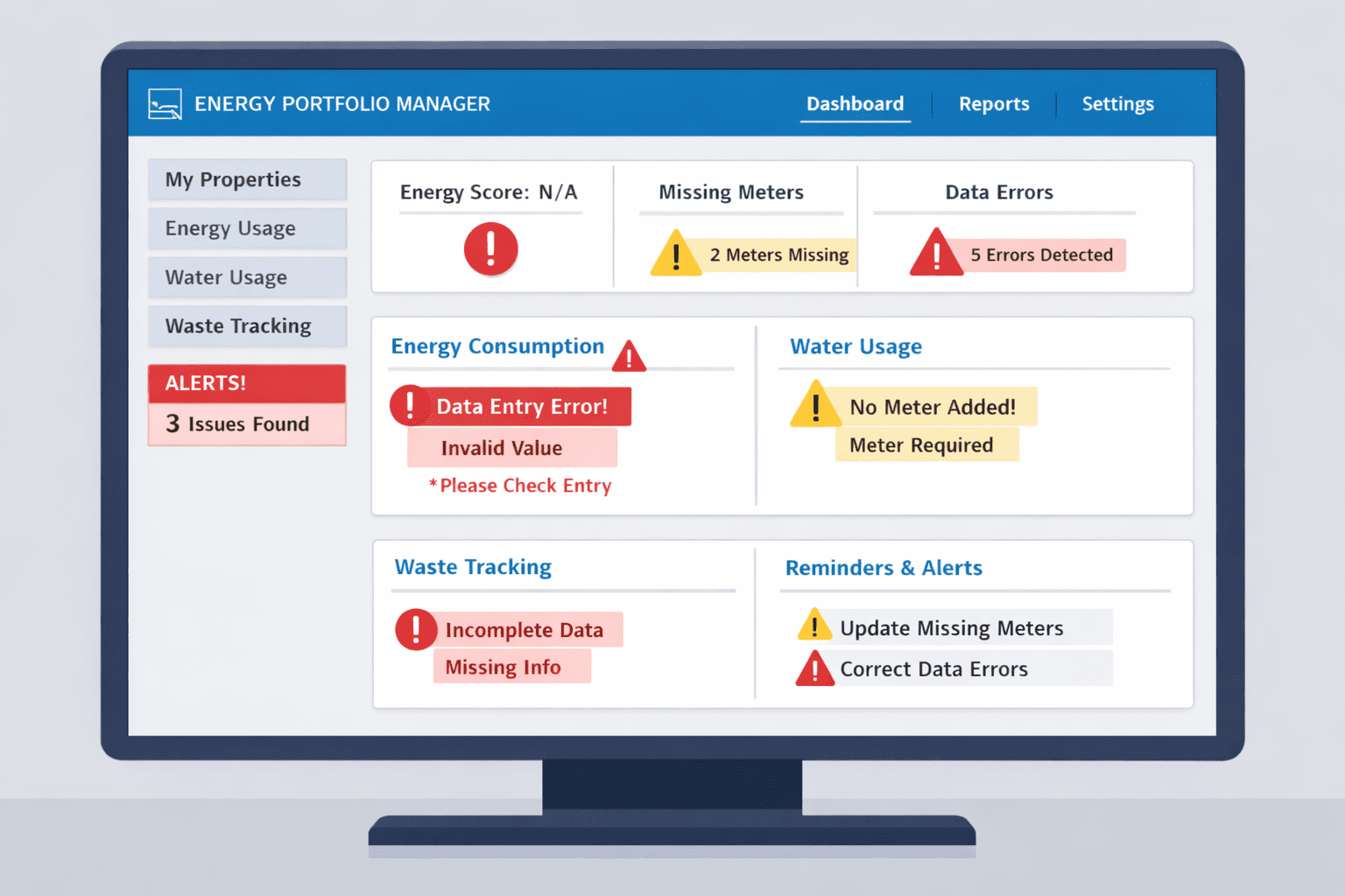 Below are some of the most frequent issues that lead to inaccurate energy reporting: