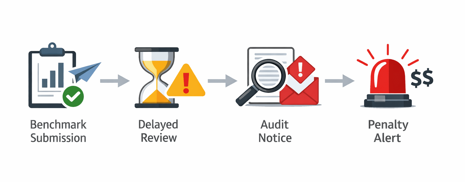 This is how benchmarking errors lead to compliance penalties play out in practice. A report filed on time can still be deemed noncompliant months later. Corrections may require resubmission, re-verification, or even third-party audits. All of this costs time and money.