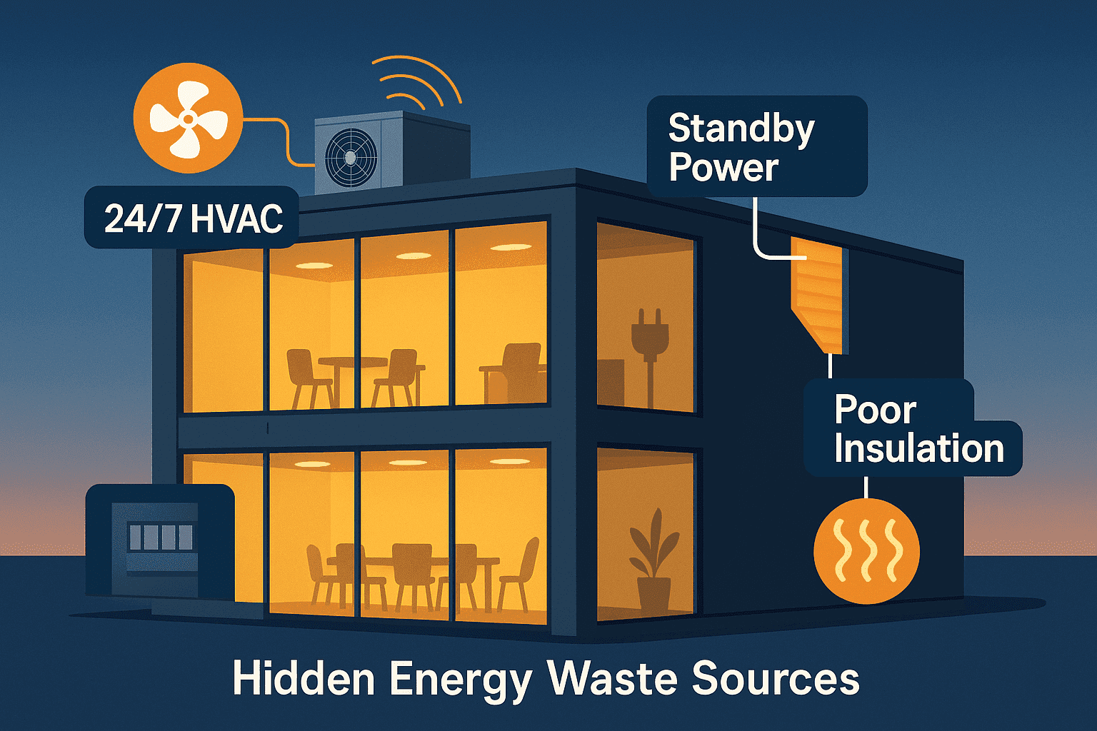 - Outdated HVAC systems running during off hours