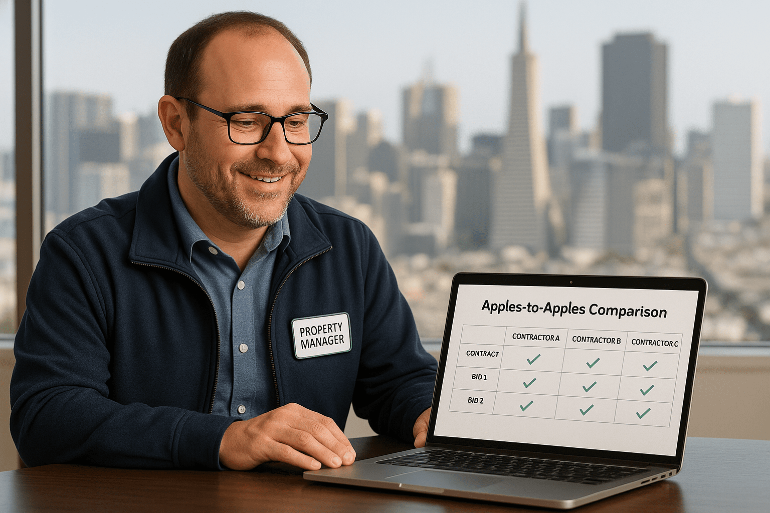 Using VertPro®’s Bid Comparison Tool, you can view each bid side by side in a standardized format. Pricing, contractor credentials, past SB 326 experience, and proposed scopes of work are clearly laid out. This makes it easy to compare apples-to-apples—reducing the risk of selecting an unqualified or overpriced vendor.