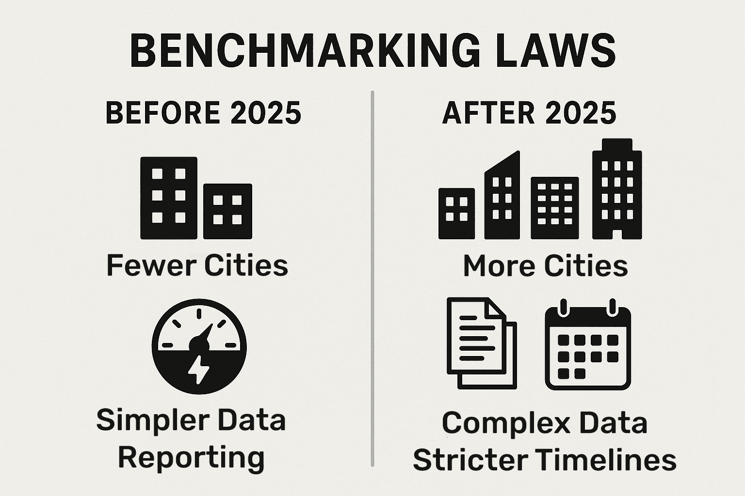 NYC has introduced new benchmarking requirements under Local Law 97. These rules affect building emissions limits and require energy audits for certain buildings starting this year.
