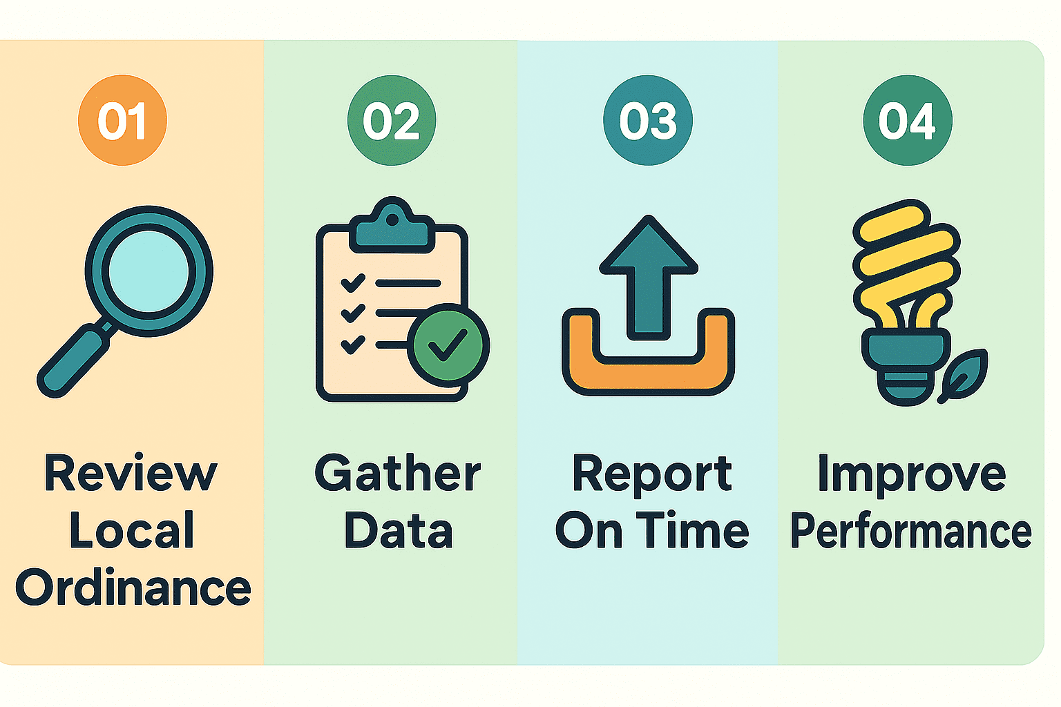 - Review your city’s ordinance: Look for changes in deadlines, building types, and data requirements.