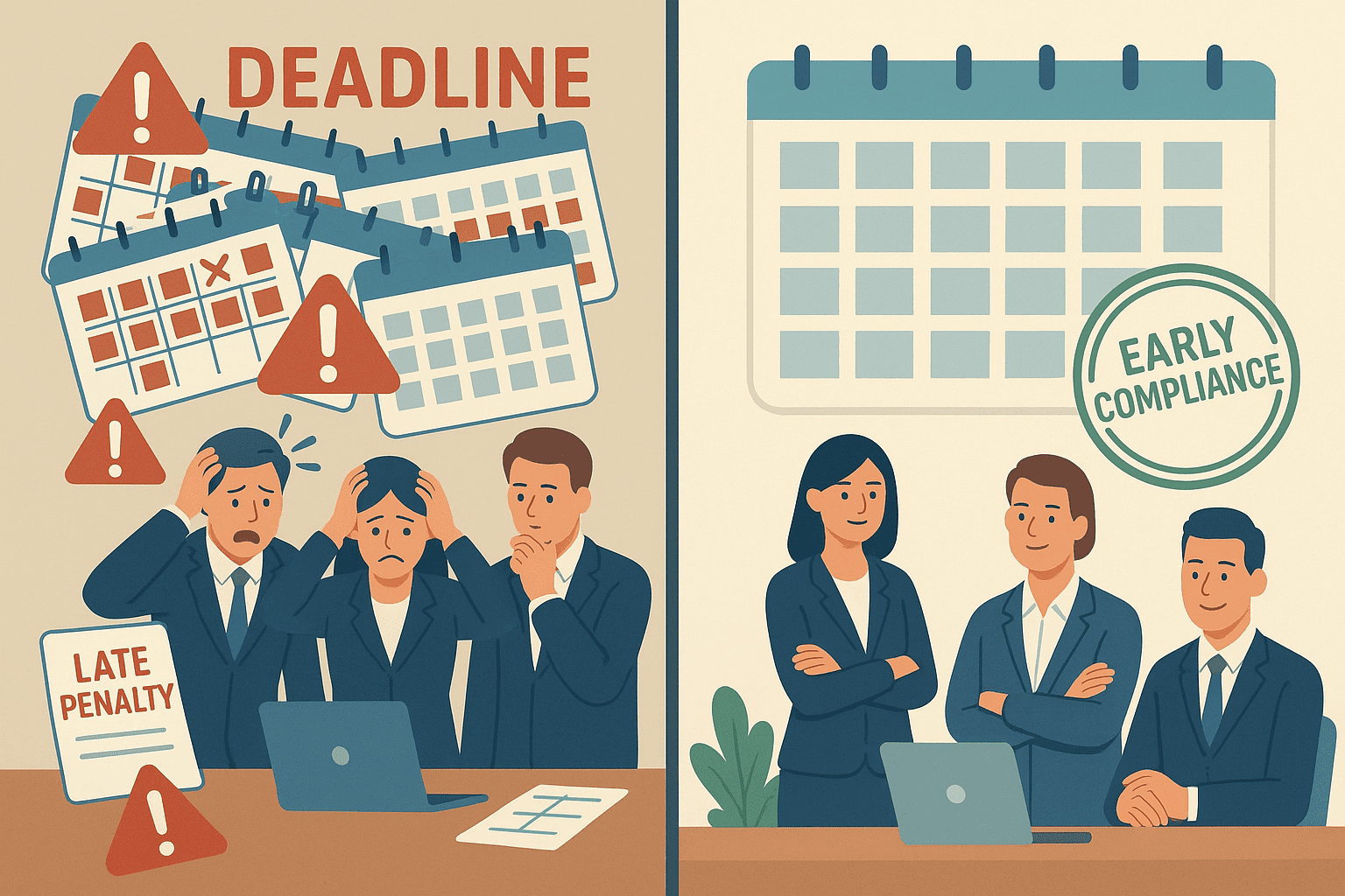If you’re managing dozens, or even hundreds, of buildings, you need to map out your deadlines now to avoid operational bottlenecks, price hikes from last-minute vendors, or even noncompliance penalties.