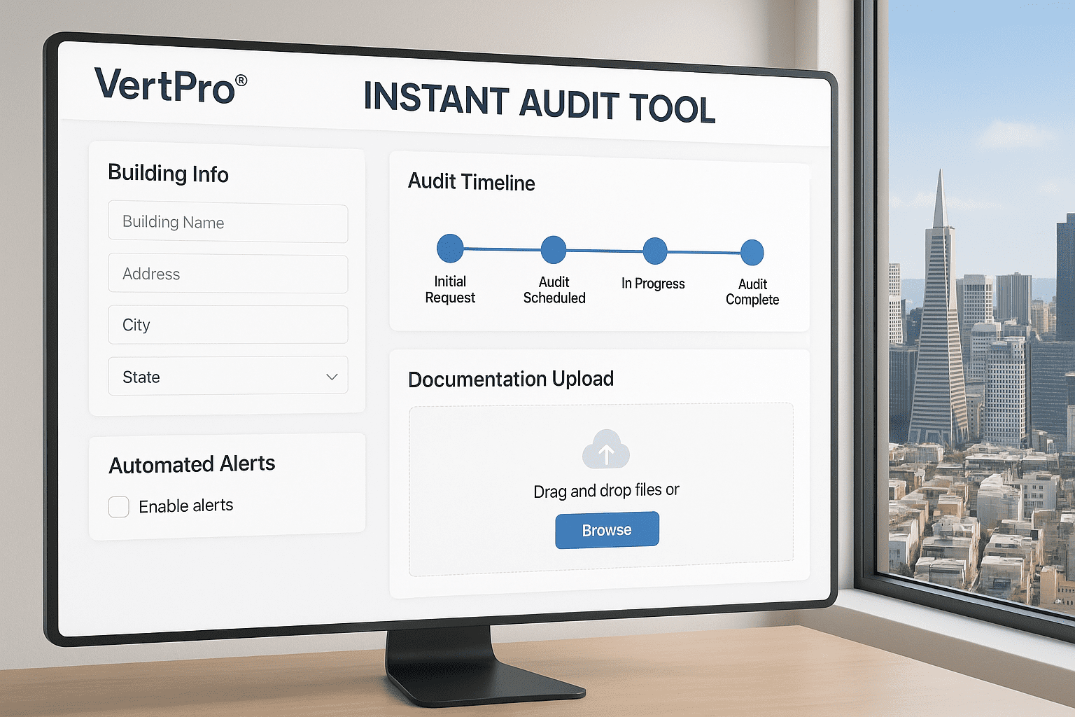 The good news? You don’t have to navigate the process alone. With tools like VertPro®’s Instant Audit, you can verify your building’s status, generate accurate quotes, and upload your documentation with confidence. Every step of the audit cycle is simplified, from initial report to final verification, helping you stay compliant, stress-free, and penalty-proof.