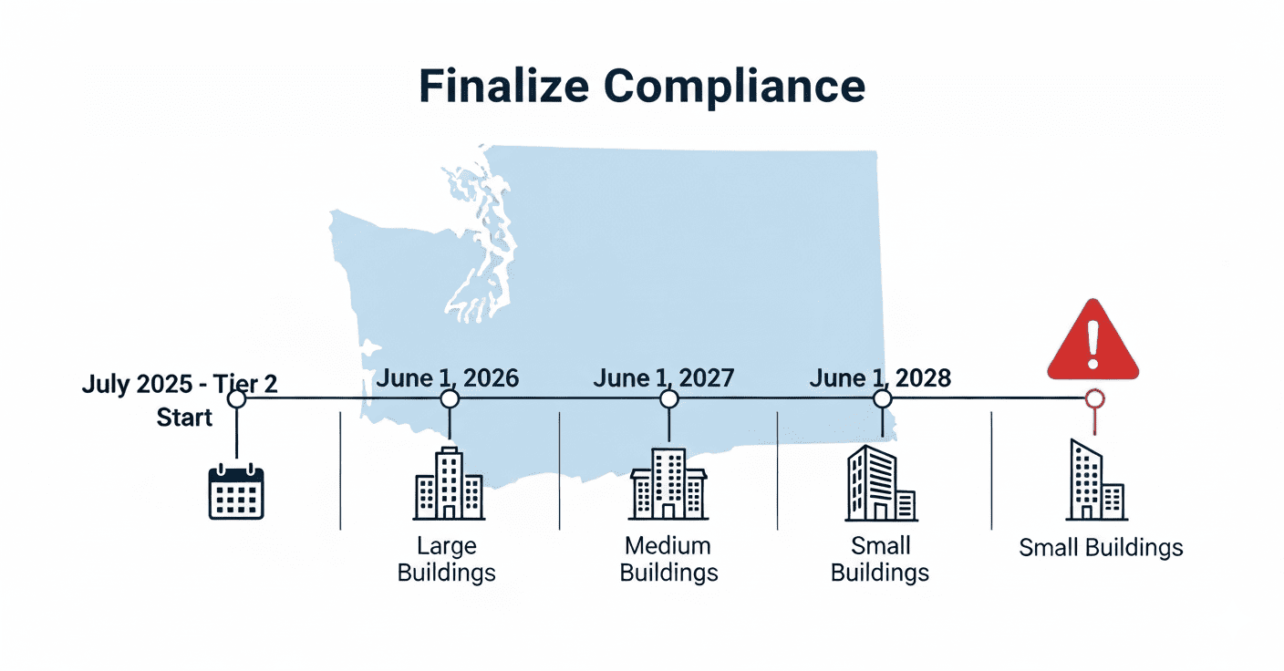 Knowing when to apply is just as important as knowing how. Washington’s Department of Commerce has set firm Clean Buildings application deadlines in 2025 and beyond, depending on your building tier.