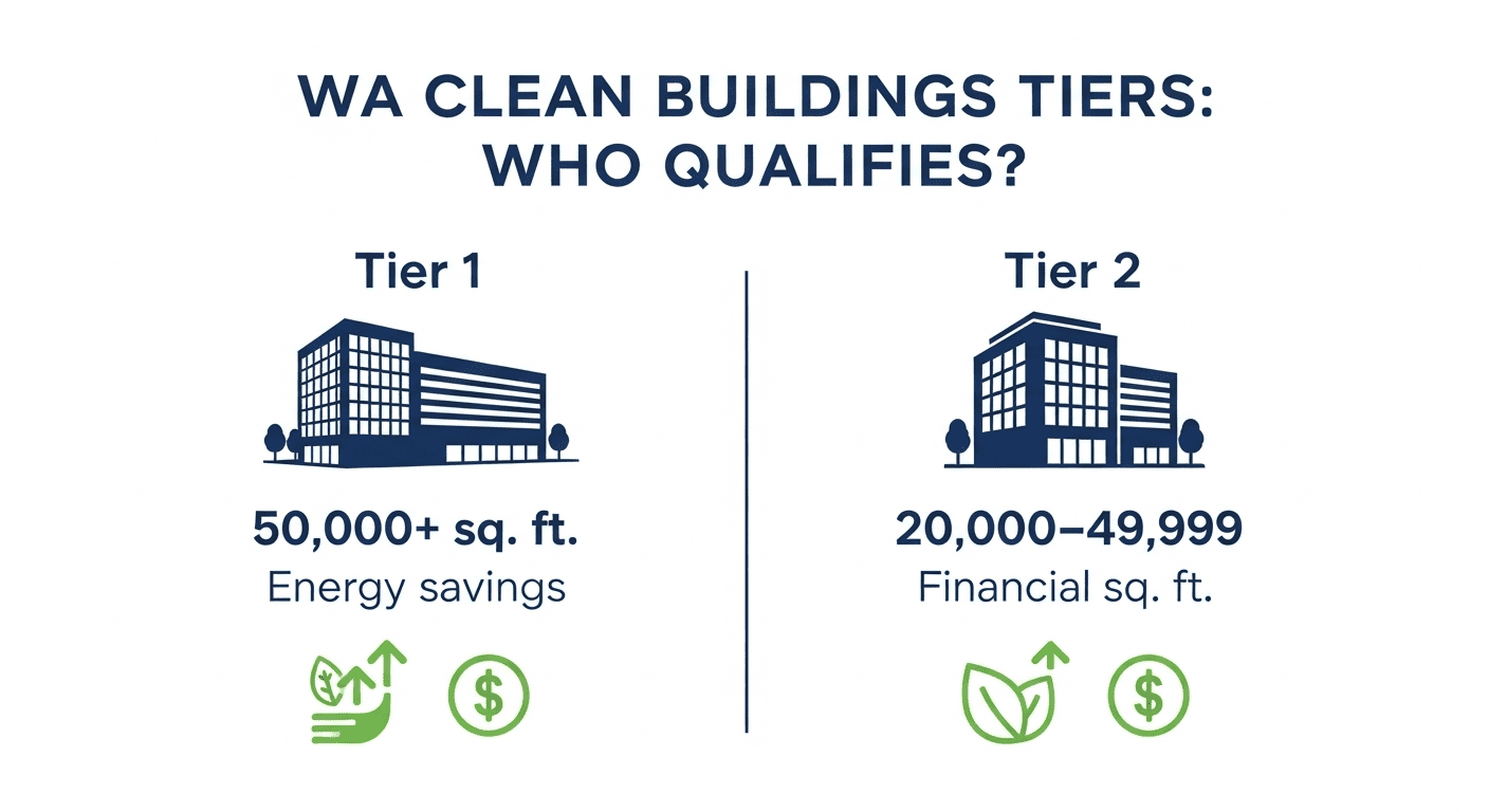 Each tier has its own timeline and requirements (which you’ll find below). With Clean Buildings rebate amounts in WA ranging from tens of thousands to over $100,000 per property, understanding those requirements is critical.