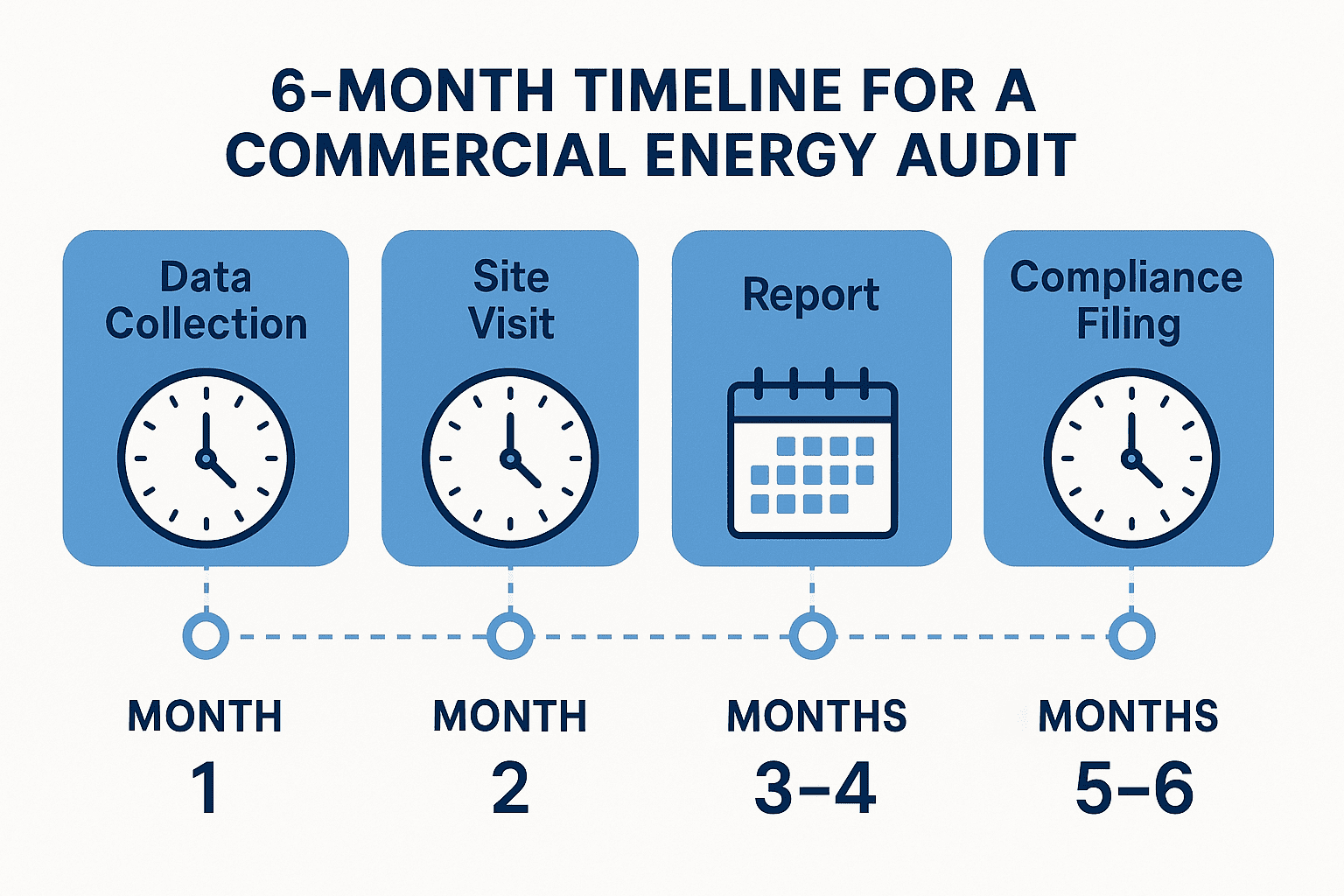 A full commercial energy audit can take 3–6 months, especially for large buildings. Why? Because it’s not just a walk-through. Audits require: